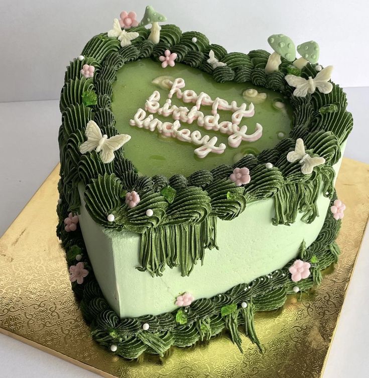 With soft green frosting and nature-inspired decorations like flowers and leaves, it feels like stepping into a serene woodland.