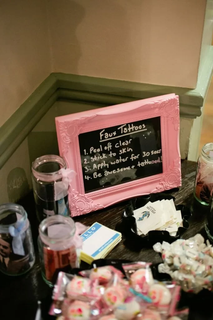 Your guests can choose their favorite designs and put them on wherever they want—arms, faces, legs, you name it! Then, everyone can strike a pose and take pictures together, showing off their new cool temporary ink.