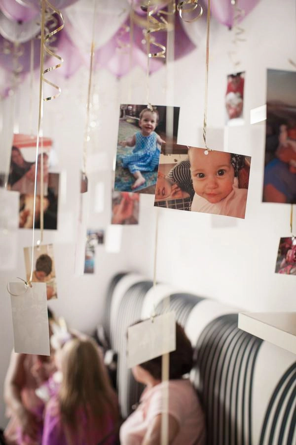 Using ceiling balloons to hold pictures is such a heartwarming idea!