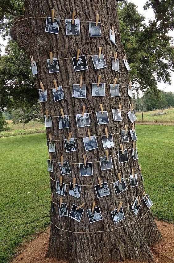 Hanging photos from branches with string or clips creates this soft, slightly whimsical look that feels effortless but personal at the same time.
