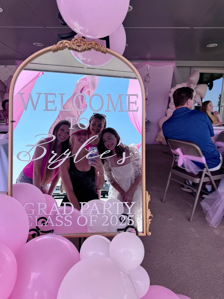 A mirror sign with your name and graduation year not only looks elegant, but it also becomes a natural photo spot.