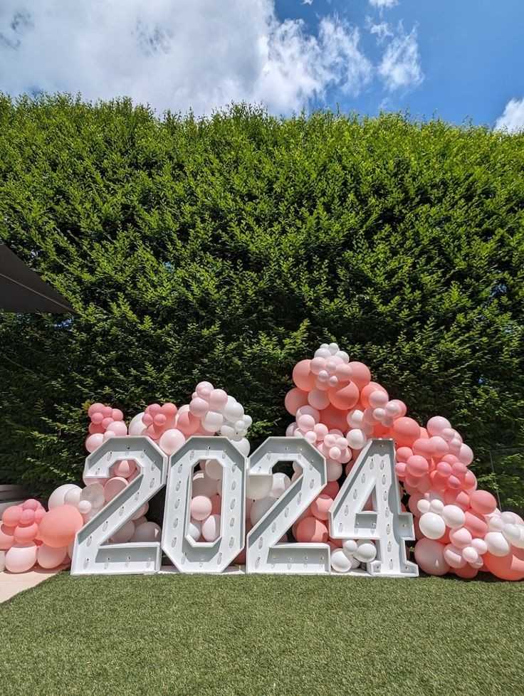 Big number balloons with a simple backdrop create a focal point for photos without needing to decorate your entire backyard.