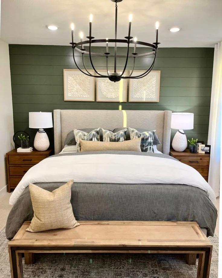 The wall behind the bed is often chosen as the accent wall in a bedroom because it naturally directs attention to the bed, the room’s focal point.