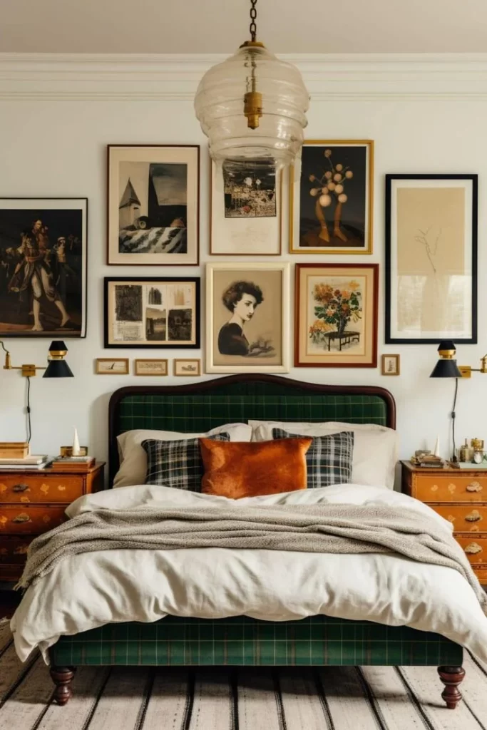 Creating a gallery wall is a creative method to decorate your bedroom with a blend of framed art, photography, and objects, perfect for a Bedroom Accent Wall.