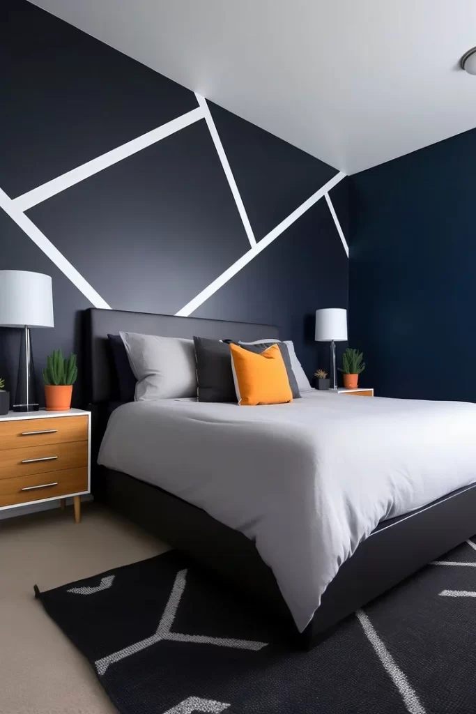 If your bedroom is in desperate need of an artistic touch, consider incorporating geometric patterns on your wall.