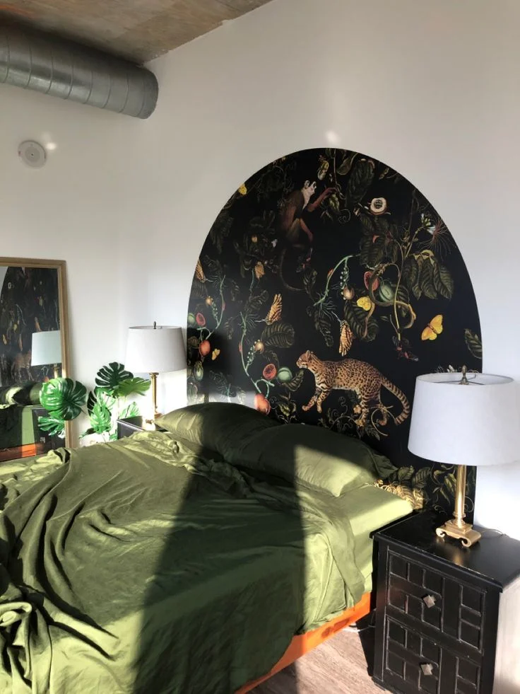 Drawing a painted mural shape on your bedroom accent wall undoubtedly creates a striking focal point, even if it doesn’t cover the entire wall.