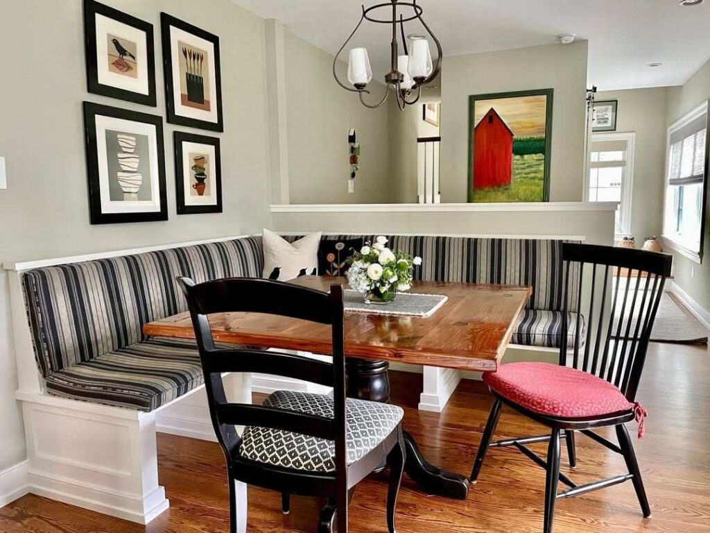 A booth-style nook creates a defined space that feels separate from the rest of your kitchen.