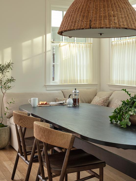 Darker tones can make a breakfast nook feel grounded and calm, especially early in the morning.