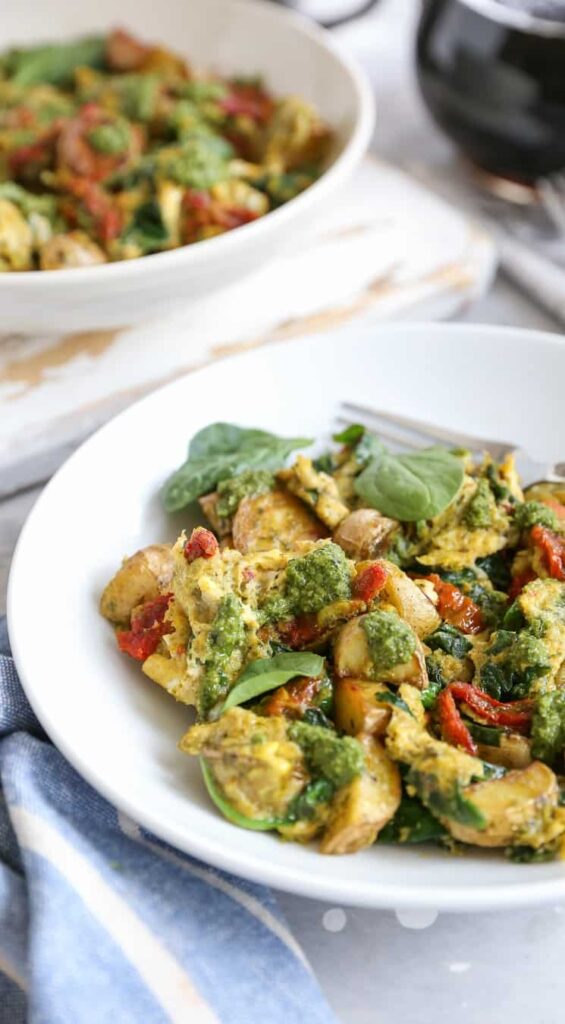 11. Pesto Sun-Dried Tomato Breakfast Scramble