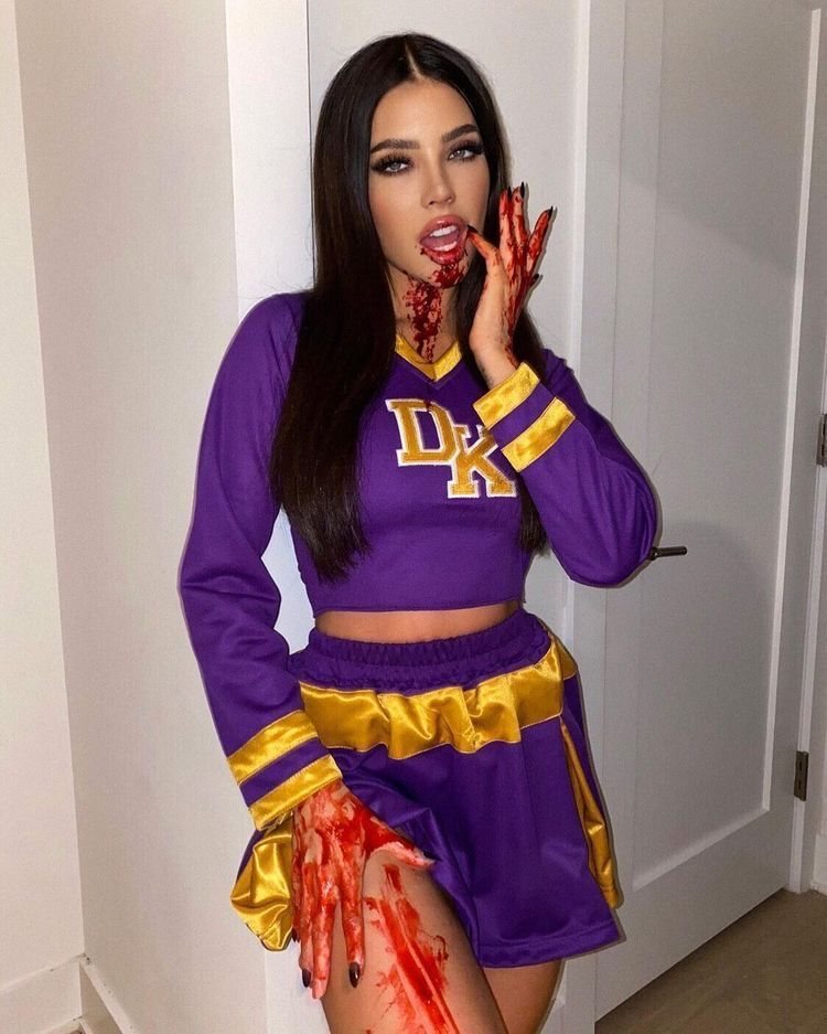 For an extra detail, carry around a lighter or fake bloody letters to really drive home the “cheerleader gone demon” energy.