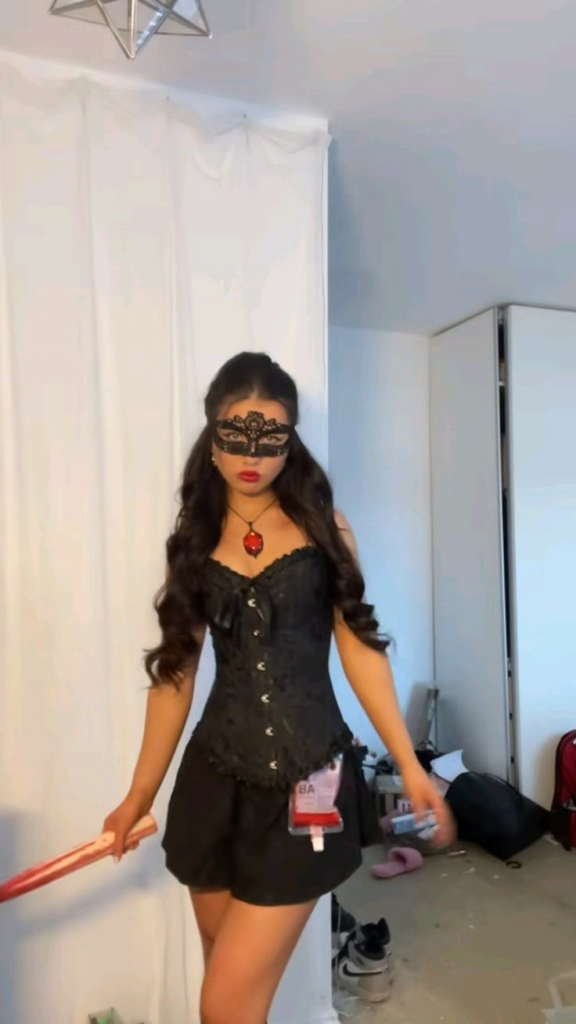 Her whole vibe is hyper-feminine yet eerie, which makes it a stand-out at any Halloween party.