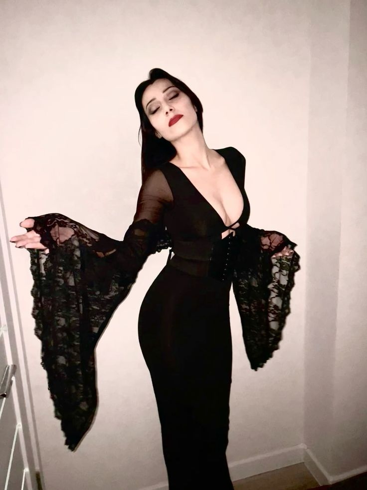 She’s glamorous, gothic, and mysterious, making this the perfect Halloween costume if you want something elegant yet chilling.