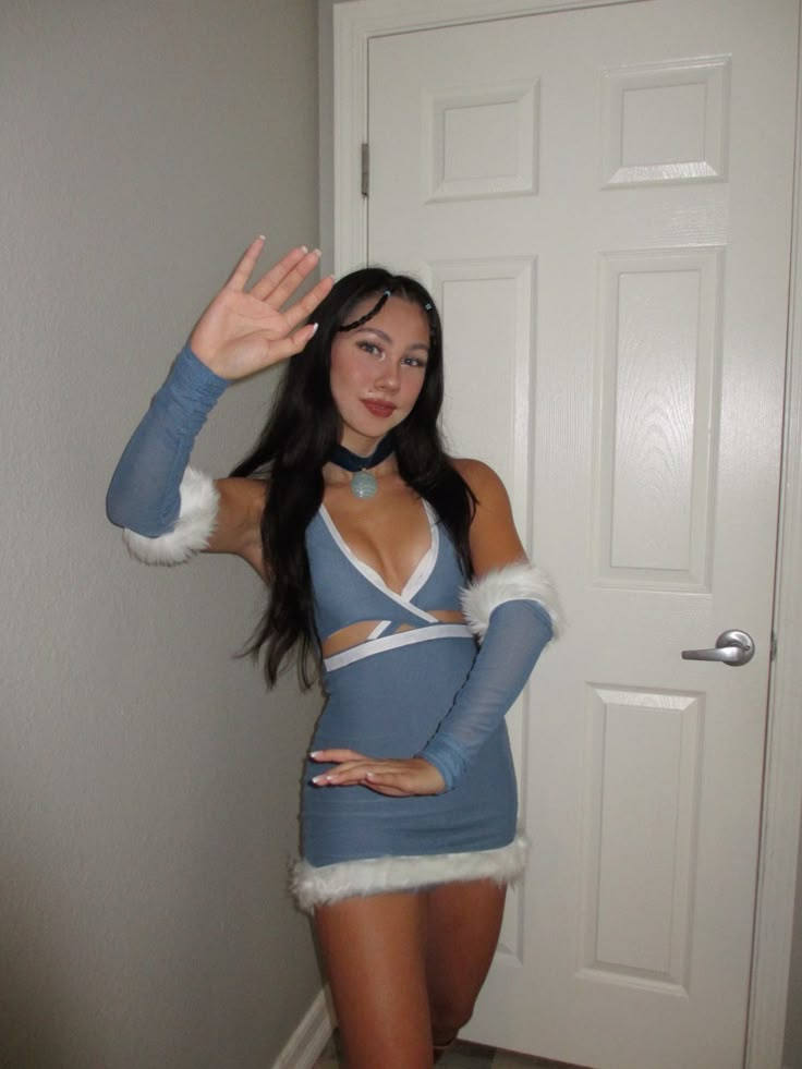 A blue water tribe outfit paired with braided brunette hair makes her instantly recognizable.