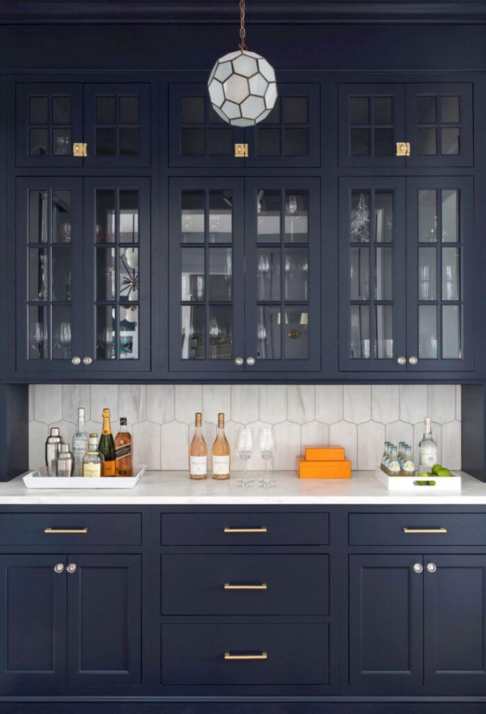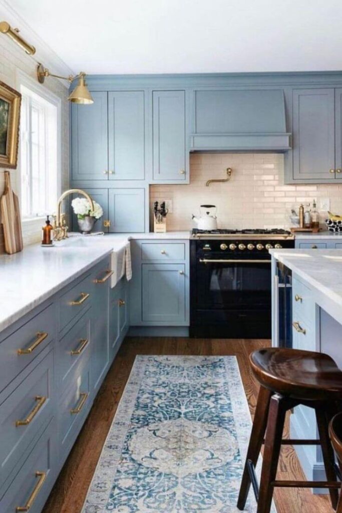 Blue cabinets also look stunning with chrome, black, and gold hardware, depending on the aesthetic you’re aiming for.