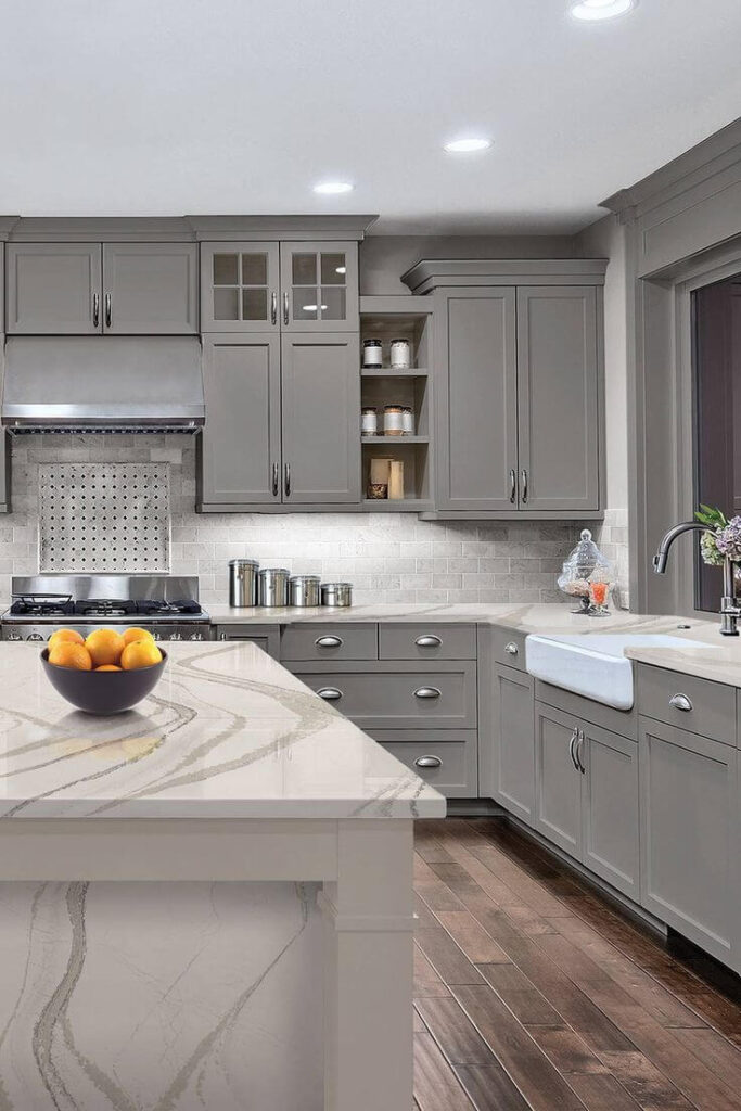 Gray cabinets are versatile and modern, working well with different styles. If you like white but want a bit more color, gray is a great choice. It’s not as harsh as black or as warm as brown, making it suitable for both modern and traditional settings.
