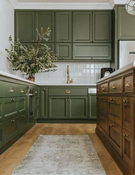 They’re also practical. Cabinets painted in green can hide marks and dirt, making cleaning easier and less frequent.