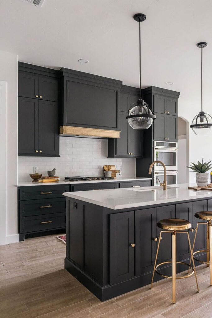 Achieve a timeless style with classic black and white cabinets. Even with the rise of colorful kitchen designs, the enduring charm of black and white kitchens remains a top trend. The strong contrast adds sophistication and elegance to your kitchen.