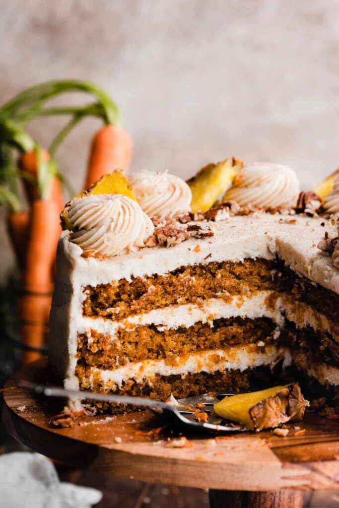A well-made vegan carrot cake is incredibly moist thanks to oil and plant-based milk.