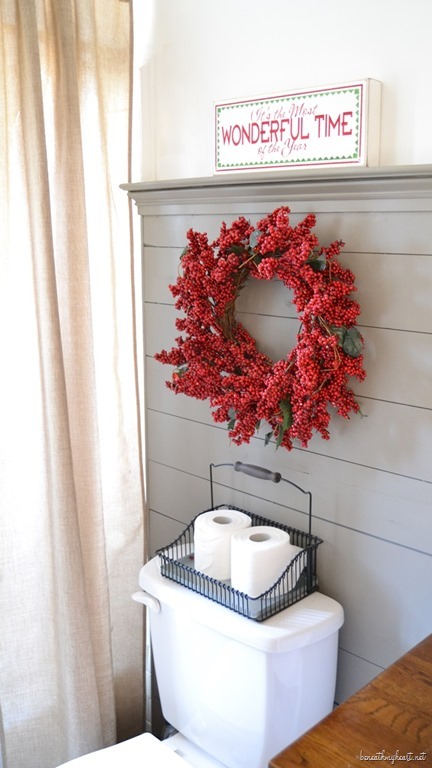 Don’t overlook the space above your toilet, it’s perfect for adding a little Christmas charm!