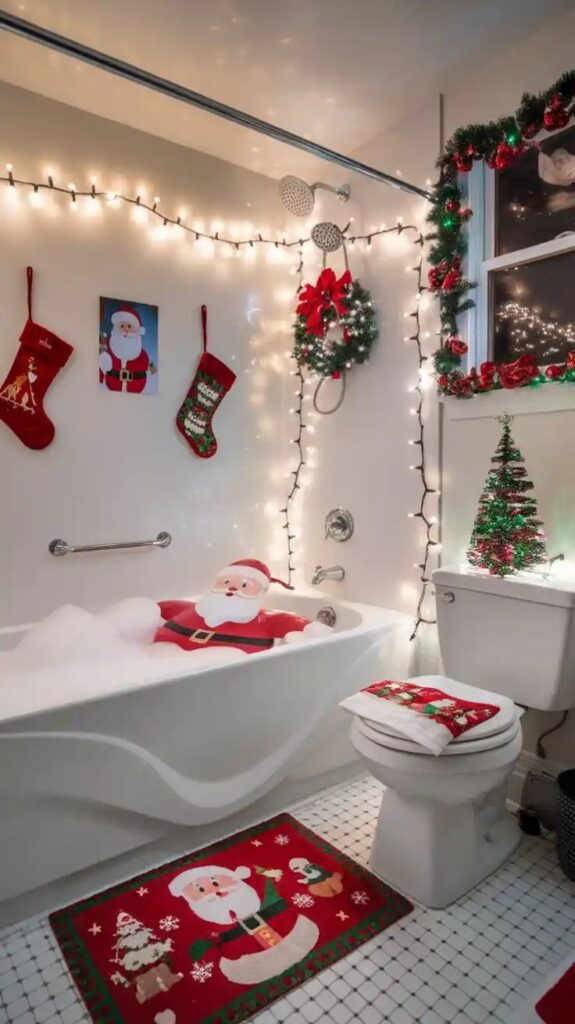 A Santa figurine near your sink, a Santa-themed toilet seat cover, or even a “Ho Ho Ho” sign will instantly bring the spirit in.