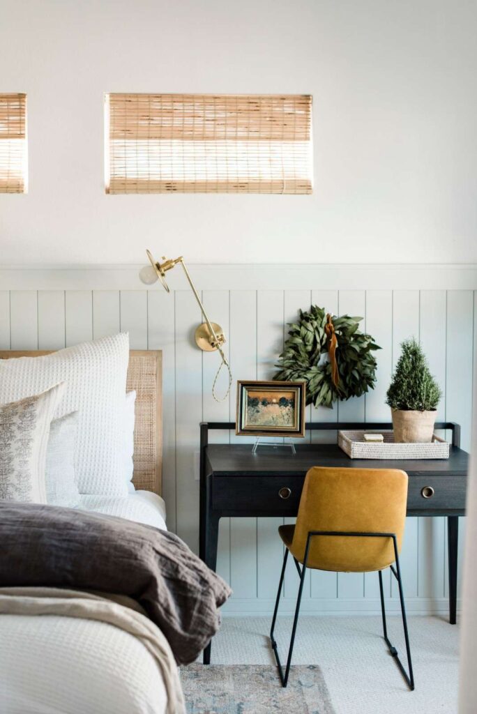 Hanging a wreath above the bed instantly gives the room a focal point that feels thoughtful without being overwhelming.
