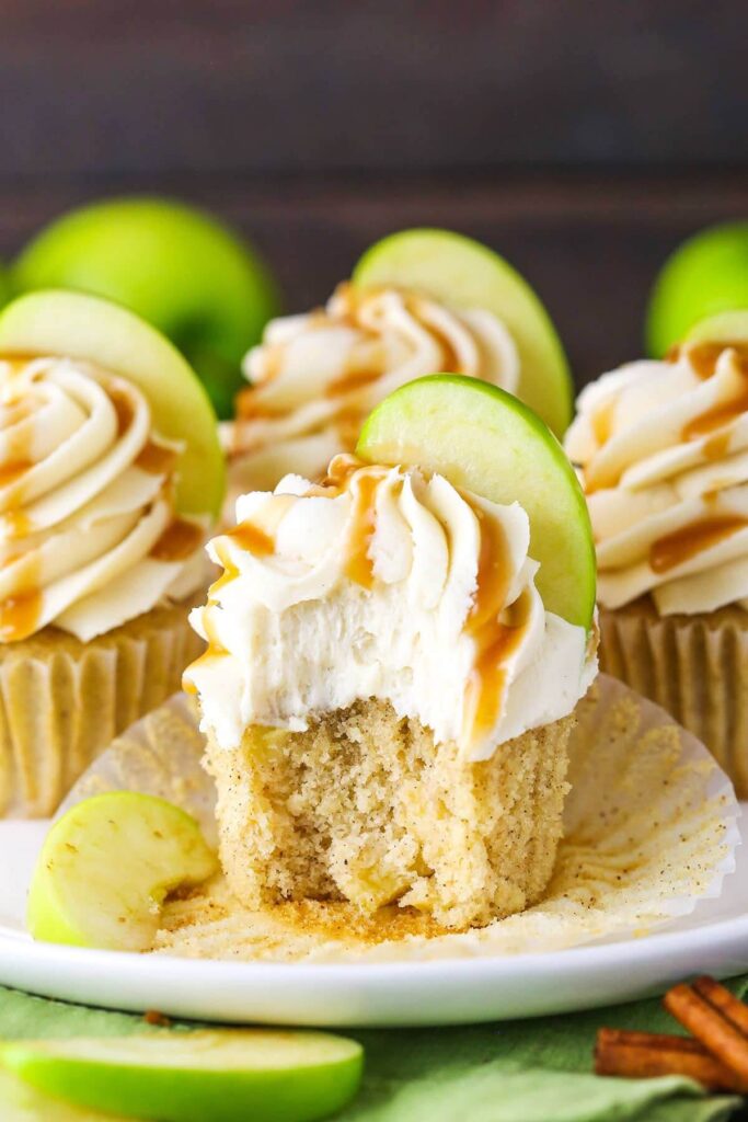 These cupcakes are made with real apple chunks and a swirl of caramel on top.