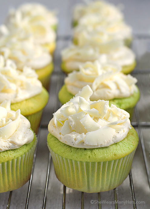 The cupcakes are nutty and moist, and the pale green color gives them that effortless holiday touch.