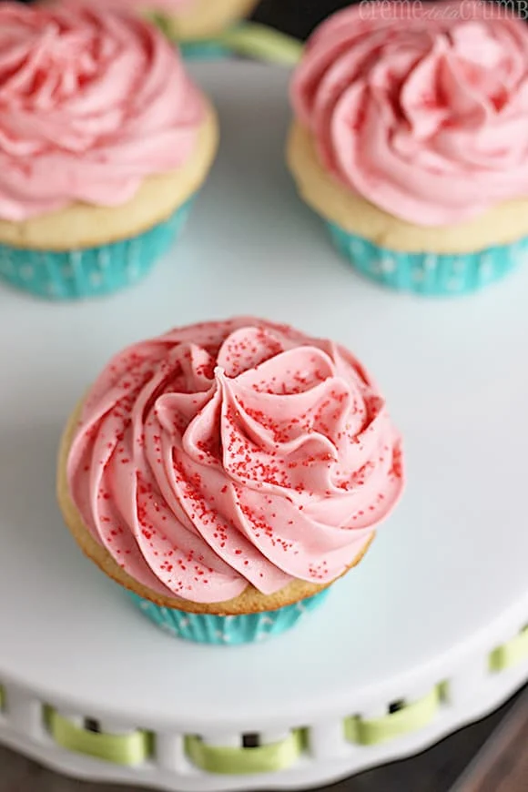 These cupcakes are soft, buttery, and simple like a sugar cookie, but fluffier.
