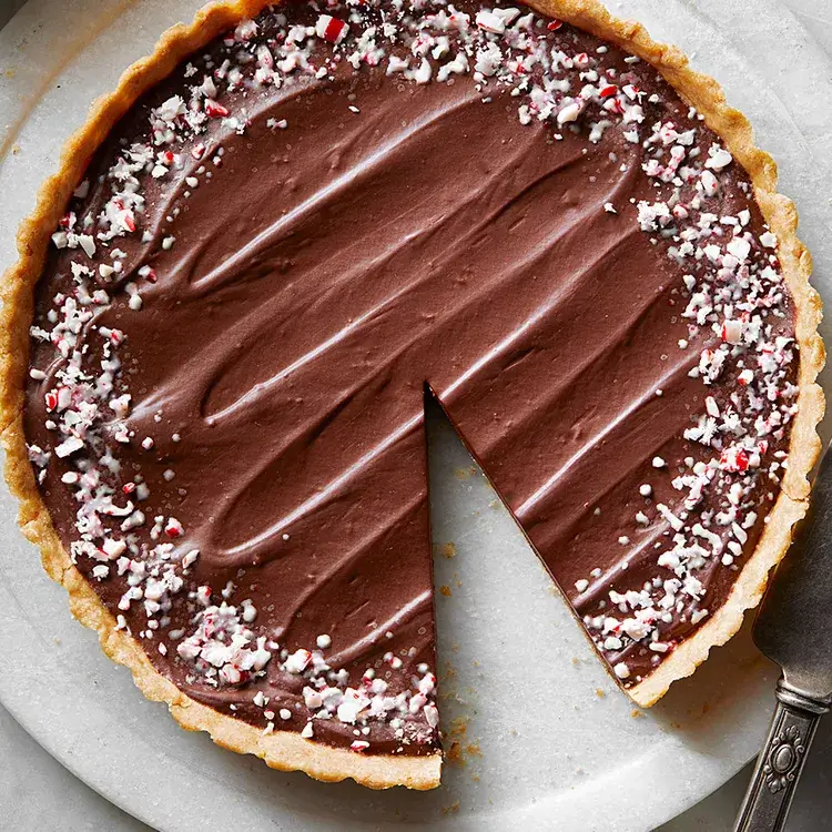 This tart has a silky chocolate filling that balances perfectly with the cool, crisp peppermint flavor.