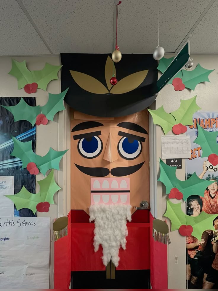 Cut out a giant nutcracker figure that spans the height of your door. It gives strong “holiday classic” vibes without being too complicated.