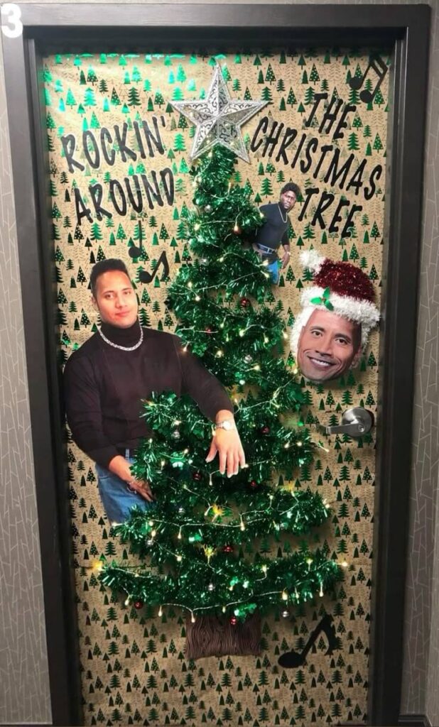 Print out funny Christmas memes and stick them all over the door. Add a sign that says, “The Memes of Christmas.”