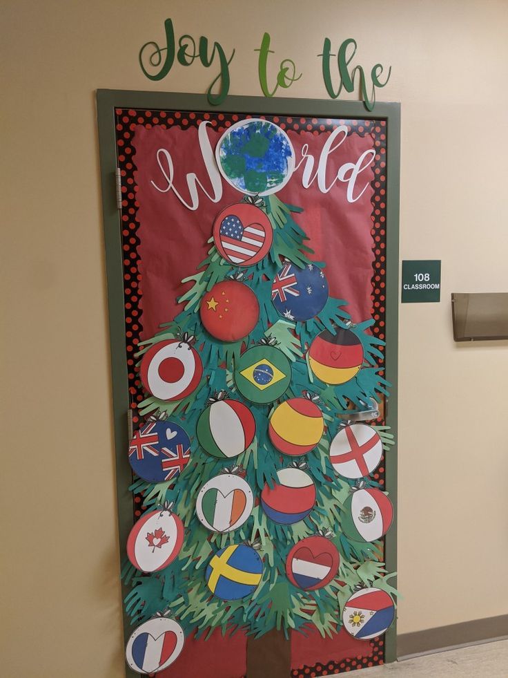 Create a big Christmas tree out of green paper, then decorate it with tiny country flags instead of ornaments.