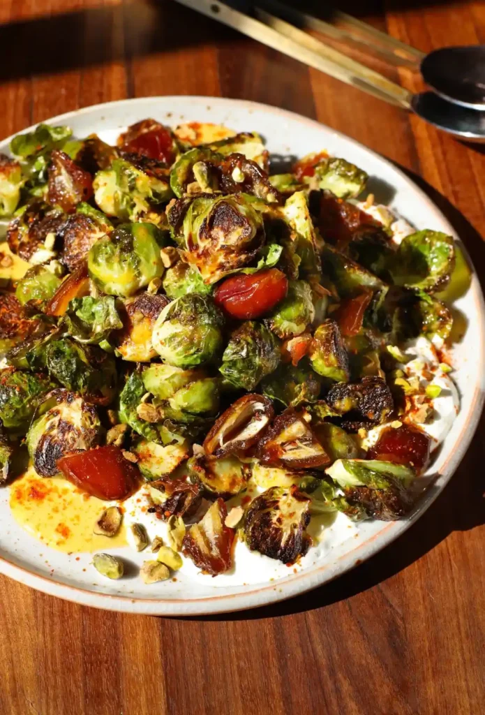 The dates melt into the sprouts just enough to soften their bitterness. It’s the kind of dish that gets people doing the whole “Wait… what’s in this?” thing.