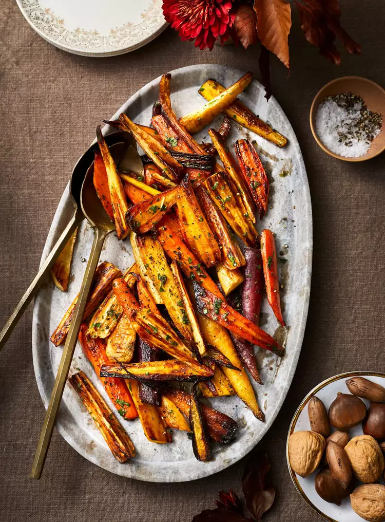 Carrots and parsnips roasted together feel old-school in the nicest way.
