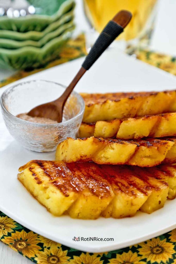 Grilling the pineapple caramelizes the edges, and the cinnamon sugar melts into this glossy, warm coating that smells incredible the second it hits the plate.