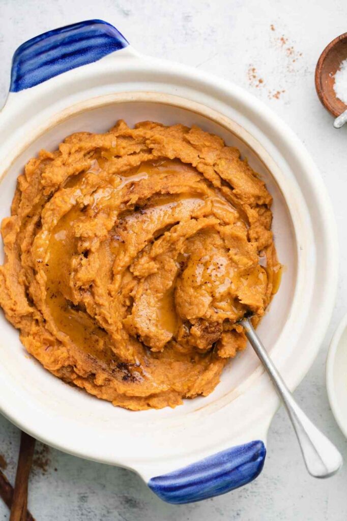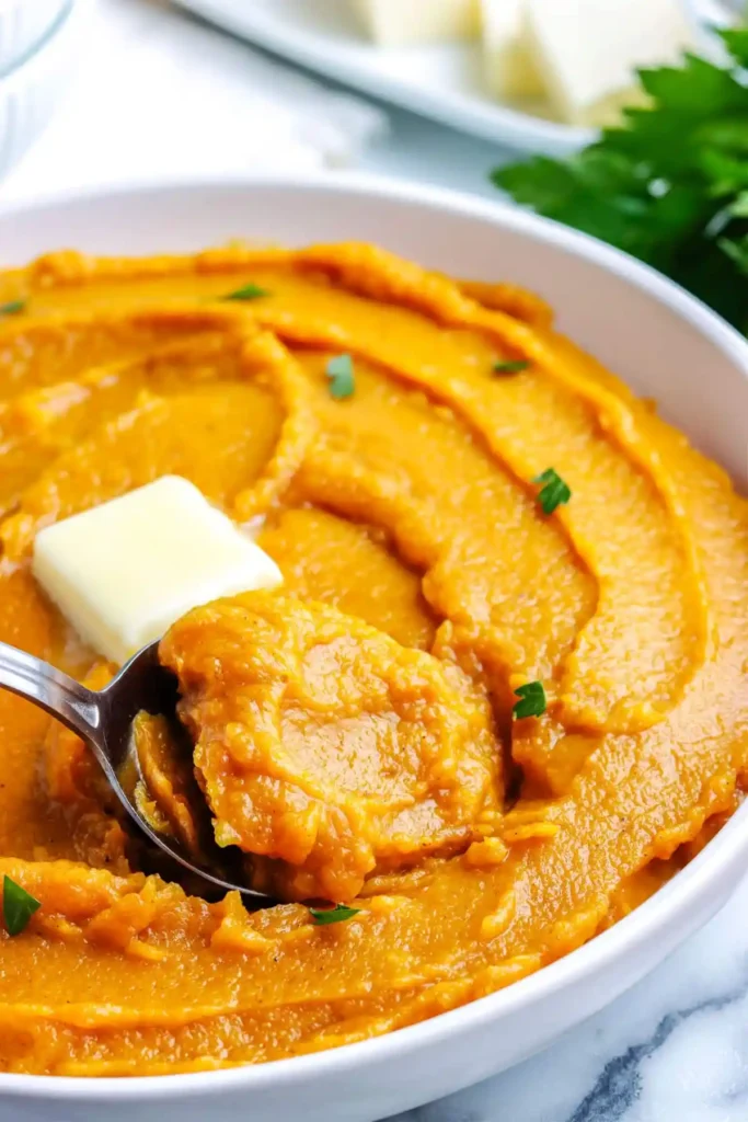 Pumpkin mash is smoother and slightly earthier than sweet potato.