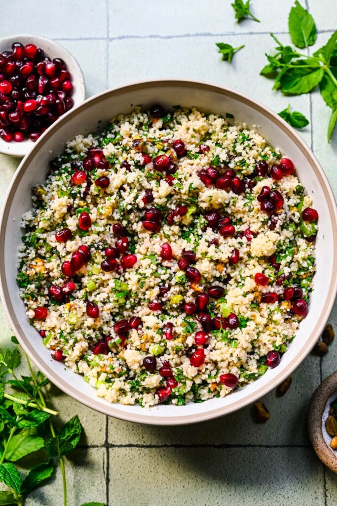 Couscous is fast, and the pomegranate adds the prettiest little pops.
