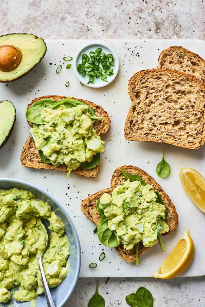 The avocado adds creaminess and healthy fat. It also cuts the mayo in half, which makes the whole thing feel lighter.
