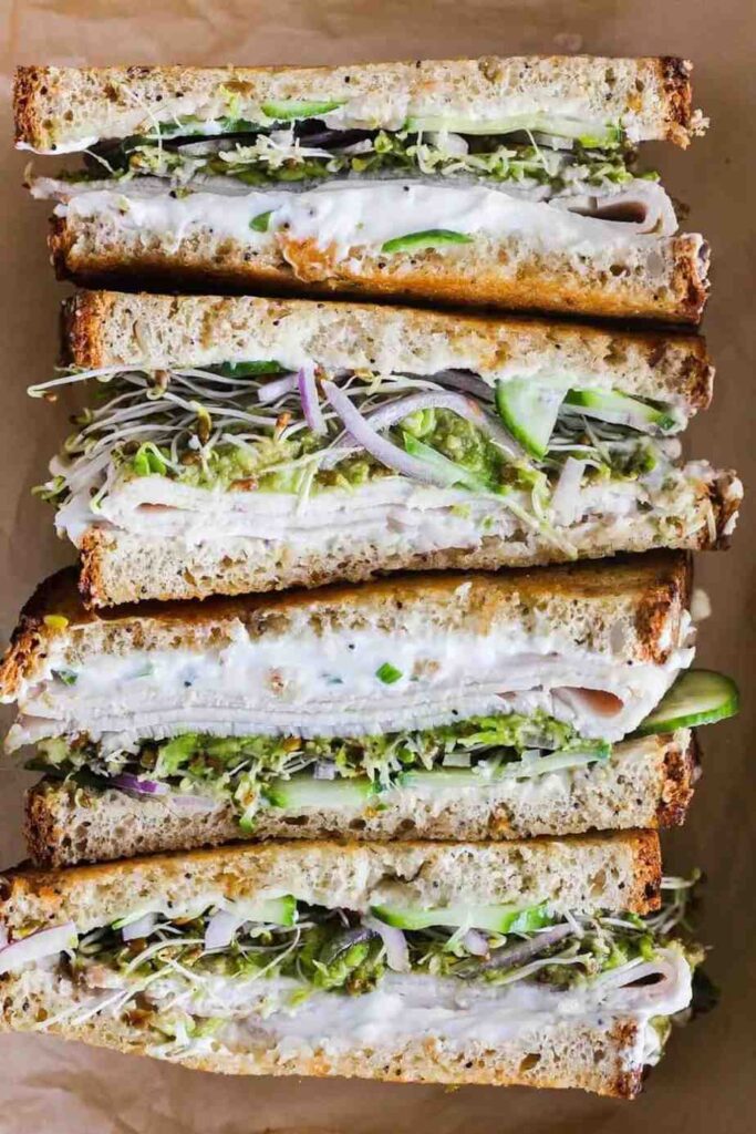 Good bread, actual good bread, not sad spongy white bread. Layer in turkey, creamy avocado, crisp lettuce, and a swipe of mustard or mayo.