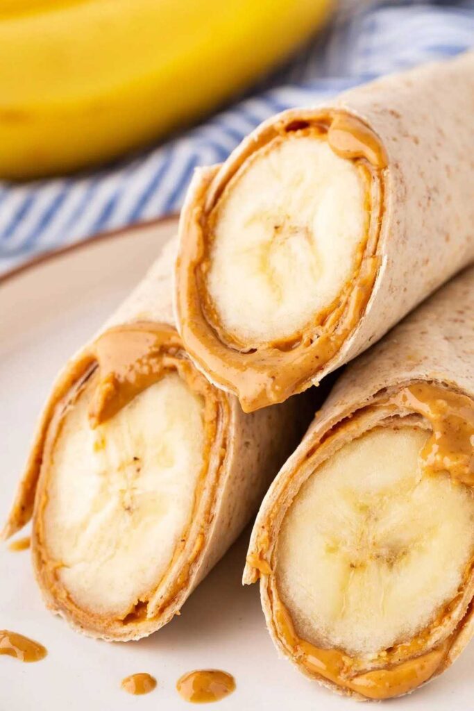 Spread peanut butter on a tortilla. Add a whole banana. Roll it up. That’s it.