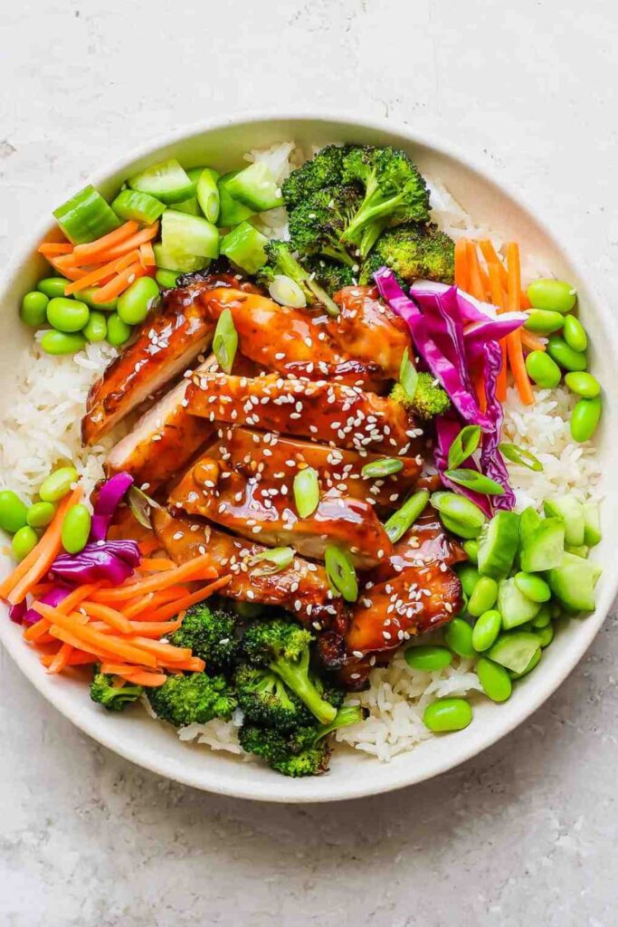 The key is using a lighter dressing. Thick teriyaki sauce gets gloopy when cold. Thin it out with rice vinegar and a little water.