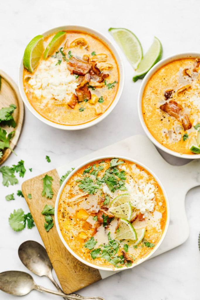 Sweet corn, creamy broth, chili powder, and Cotija cheese make every spoonful a flavor bomb.