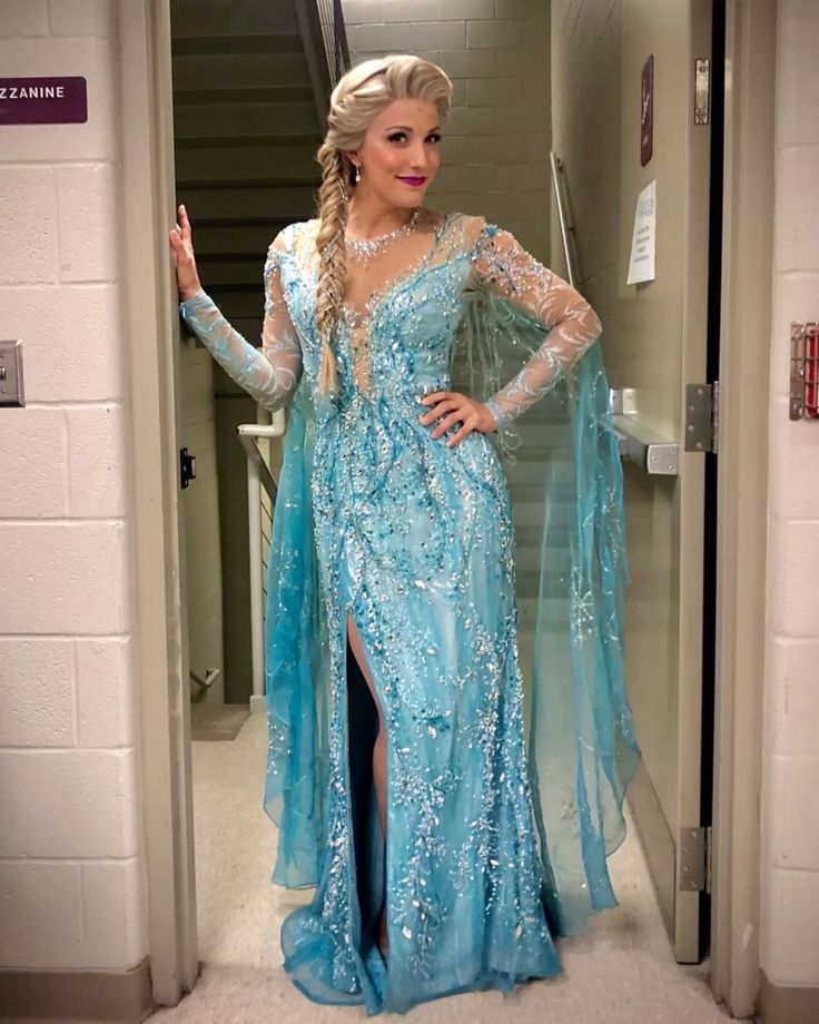 Her ice-blue gown paired with sparkly details and a dramatic cape will make you the star of any Halloween event.
