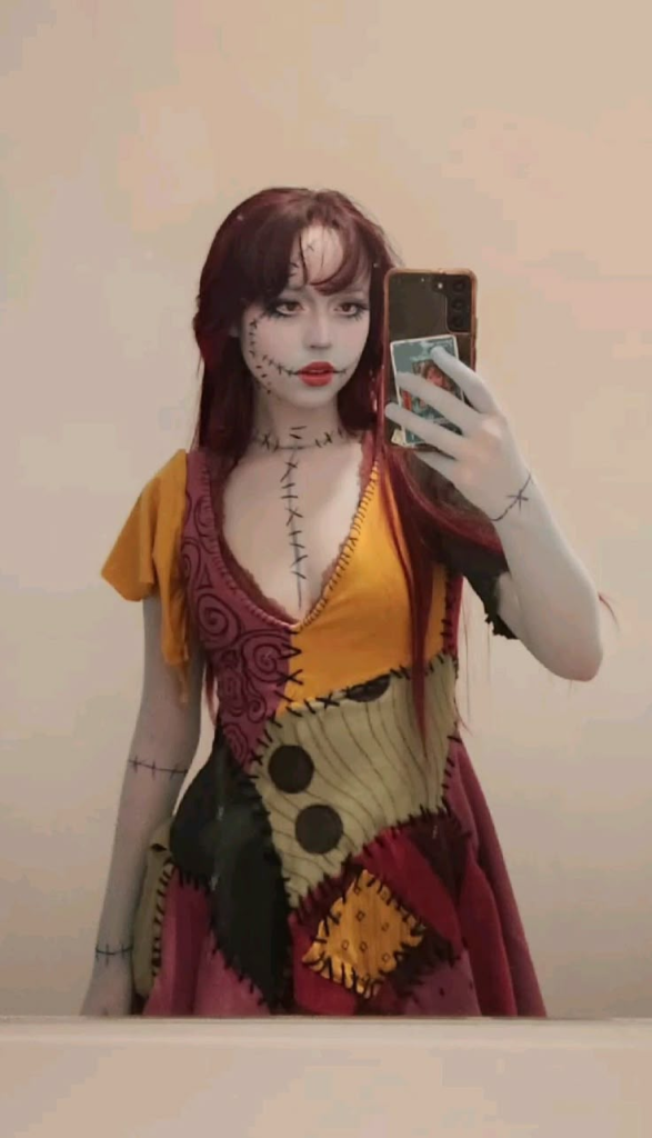 Pair with Jack or go solo, Sally’s patchwork dress and stitched makeup are stunning for Halloween.