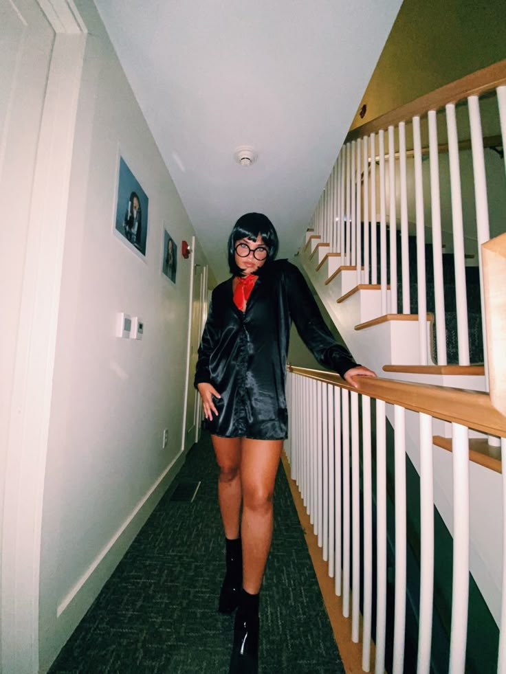 Her chic black outfit, round glasses, and bob wig are instantly iconic.