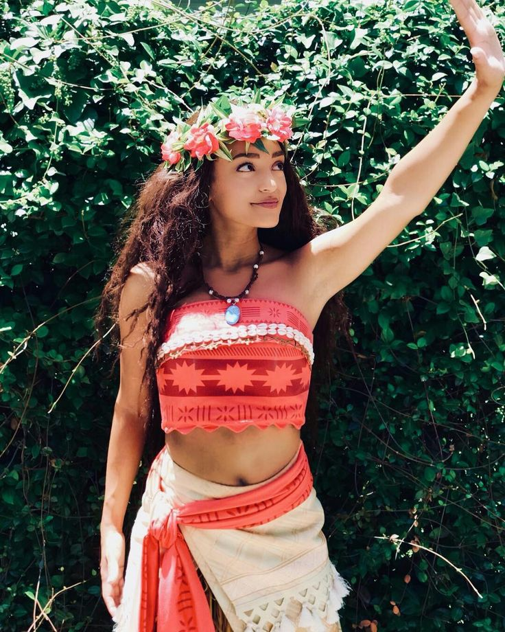 Add wavy hair and a flower crown to bring the island vibes to life.