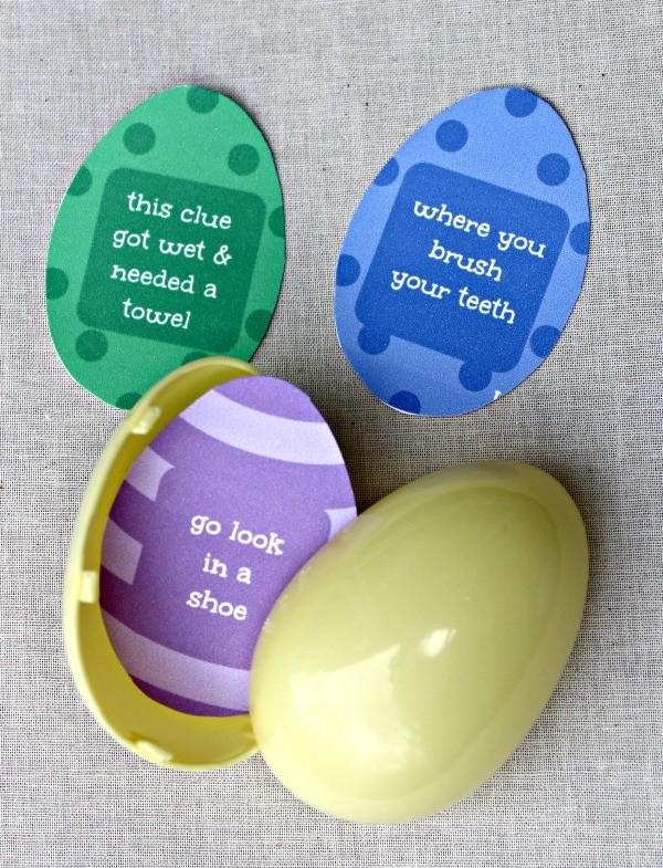 Instead of randomly hiding eggs, turn the entire thing into a clue trail.