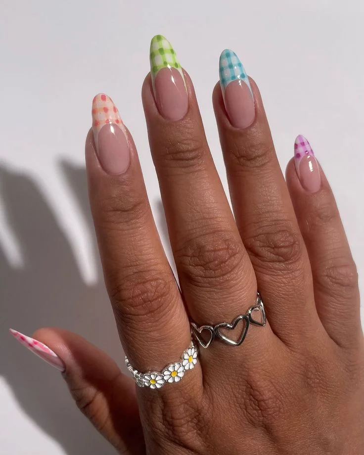 Nothing says “spring picnic” quite like the classic checkered blanket, and these pastel gingham nails capture that charm perfectly.