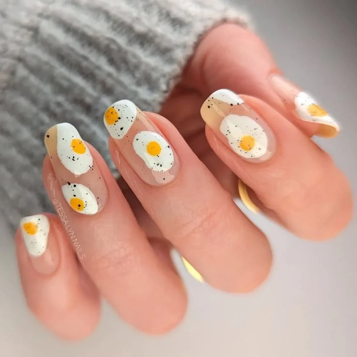 Brighten up your Sunday with this playful sunny-side-up nail art!
