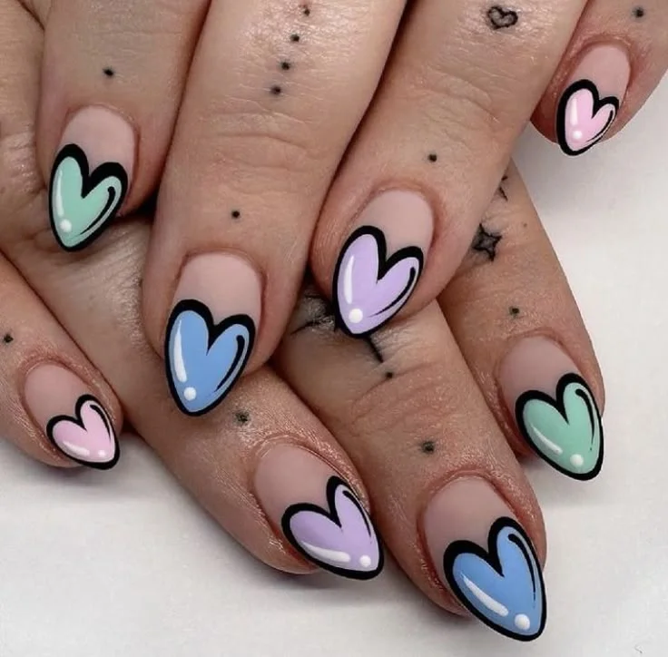 This comic book-inspired design is pure creativity, with bold outlines and vibrant colors that make your nails look like they jumped straight out of a TV screen.